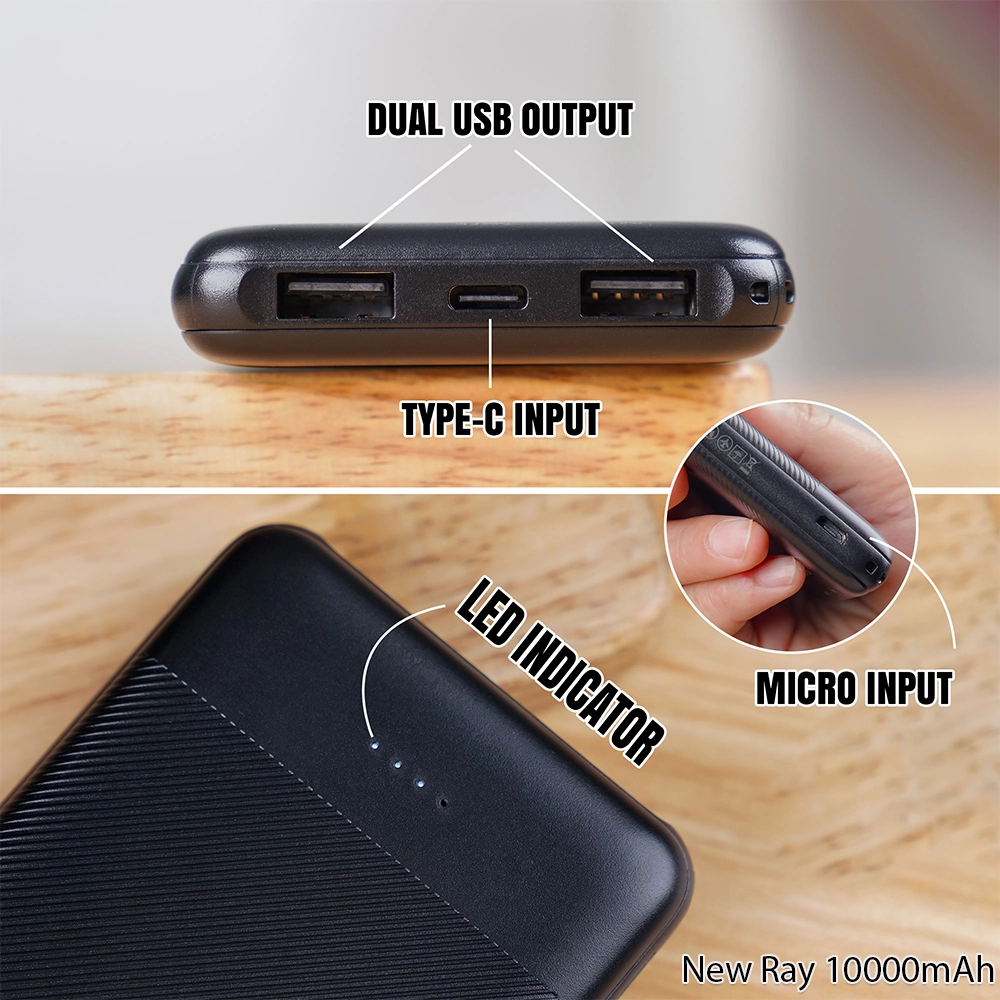 တစ်ကိုယ်စာသုံးဖို့လုံလောက်တဲ့ သေးသေးပါးပါး Powerbank မျိုးလေးရှာနေရင်တော့ Gadget Max 10000mAh New Ray Powerbank လေးကိုရွေးချယ်နိုင်ပါတယ်နော်။အားလက်ကျန်ကိုပြပေးမယ့် LED Indicator လည်းပါသေးတယ်နော်။