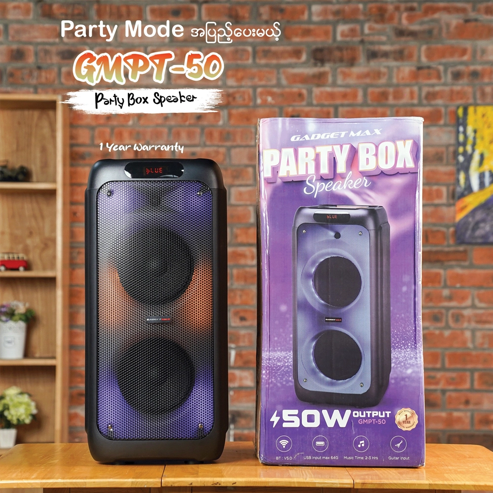 ရောင်စုံမီးတွေနဲ့ စိတ်ကြိုက်ကဲလို့ရအောင် Gadget Max GMPT-50 Party Box လေး တစ်လုံးလောက်တော့ ရှိထားသင့်တယ်နော်။