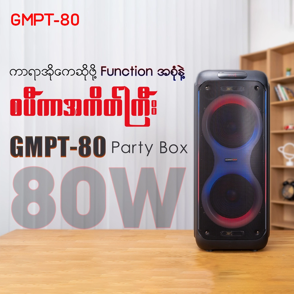 ပါတီတွေမှာ သုံးဖို့ပဲဖြစ်ဖြစ်၊ အိမ်မှာပဲ ကာရာအိုကေ ဆိုချင်တာပဲဖြစ်ဖြစ် Gadget Max GMPT-80 Party Box လေးရှိနေရင် အားလုံး အိုကေစိုပြေသွားမှာနော်။