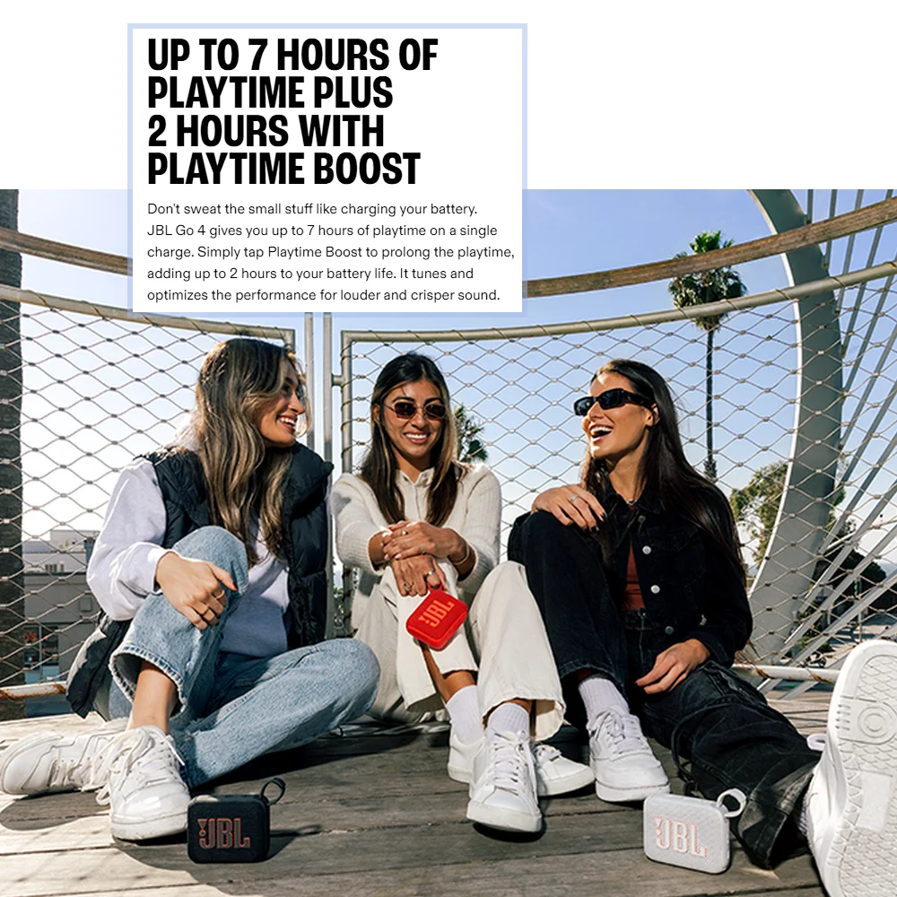 Speaker သေးသေးလေးနဲ့ သံစဉ်ငြိမ့်ငြိမ့်လေးတွေနားထောင်ချင်တယ်ဆိုရင်တော့ JBL Harman Go 4 လေးက ရွေးချယ်စရာတစ်ခုပါပဲနော်။4.2W နဲ့အားကောင်းတဲ့ JBL Original Pro Sound လေးလည်းပါသေးတယ်နော်။အသံကို အဆုံးထိဖွင့်ရင်တောင် ကွဲထွက်မနေပဲ Bass သံကအစ စီစီရီရီလေး ထွက်တာကြောင့် အသံမနိုင်မှာတွေစိုးရိမ်စရာမလိုပါဘူး။Portable Design လေးနဲ့ဆိုတော့ Indoor/Outdoor နေရာစုံ သယ်သွားနိုင်တဲ့အပြင် IP67 Waterproof/ Dustproof ဖြစ်လို့ အကြမ်းခံတဲ့နေရာမှာ ဆရာကြီးပဲနော်။