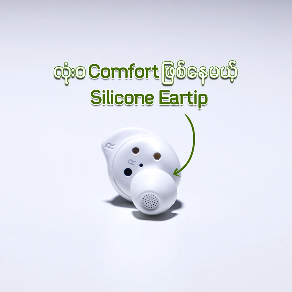 ကိုယ်ကြိုက်တဲ့ သီချင်းတွေကို နားထောင်ရင်း ဆူညံသံတွေရဲ့ အဝေးဆုံးတစ်နေရာကို ရွက်လွှင့် စီးမျှောချင်တယ်ဆိုရင် Active Noise Cancellation ပါတဲ့ Samsung Galaxy Buds FE လေးရှိတယ်နော်။