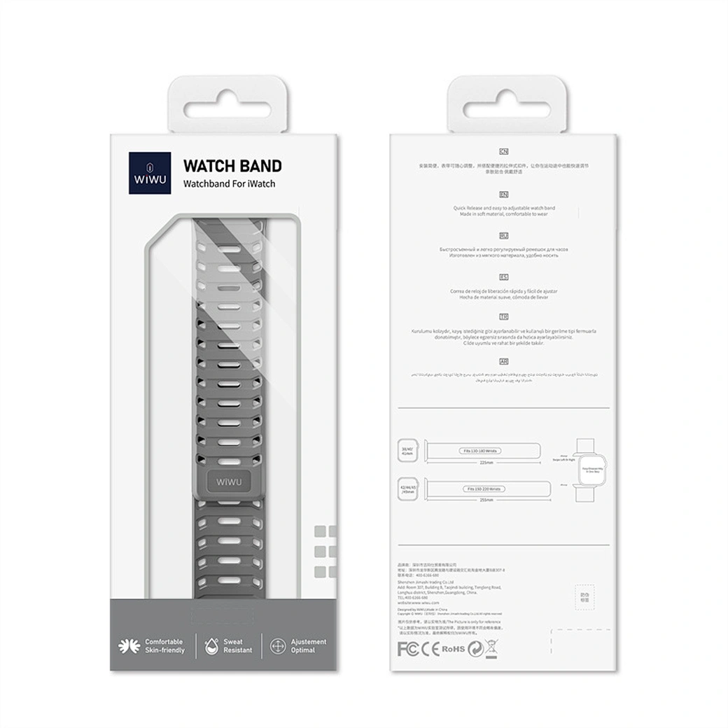 Apple Watch တွေသုံးရင်းနဲ့ အချိန်ကြာလာတာနဲ့ အမျှ၊ Original လက်ပတ်ကြိုးကို ငြီးငွေ့လာလို့ ကြိုး အသစ် လဲပတ်ချင်တာဘဲ ဖြစ်ဖြစ်၊ ကြိုးဟောင်းသွား လို့ လဲချင်တာဘဲဖြစ်ဖြစ် Wiwu Wi-WB016 Comfit Watchband လေးရှိပါတယ်။ ဒီနာရီကြိုးလေးကိုတော့ Material အနေနဲ့ Premium Soft Silicone သုံးပေးထားလို့ သက်သောင့်သက်သာရှိမှုကို ဦးစားပေးထားတာဖြစ်ပြီး Closure Type အနေနဲ့ကတော့ Classic Pin-and-Tuck or Magnetic သုံးပေးထားပါတယ်။ သက်သောင့်သက်သာရှိတာကို လိုချင်ပြီး Classis Look ကိုဘဲသဘောကျပါတယ် ဆိုတဲ့ သူတွေ ရွေးချယ်သင့်တဲ့ Apple Watch လက်ပတ်လေးပါ။