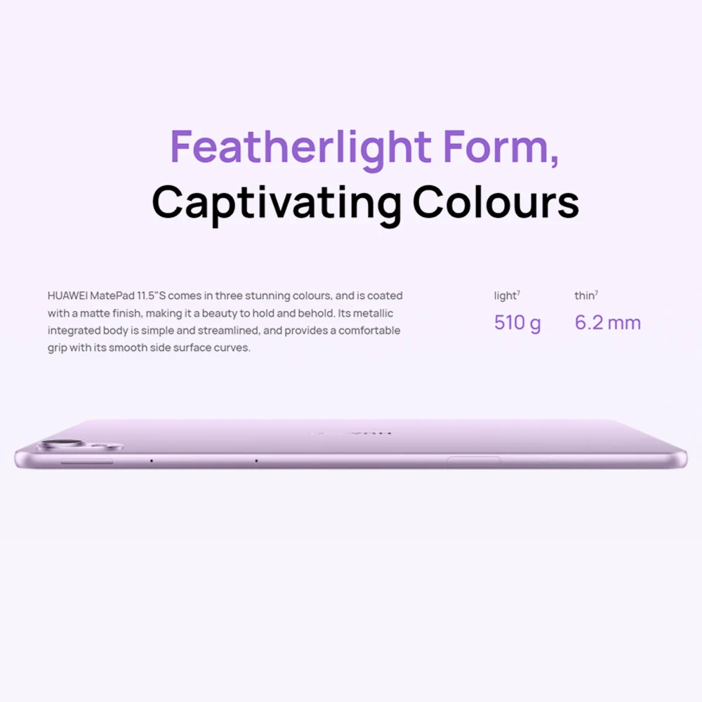 Screen Size ခပ်ကြီးကြီးနဲ့ Light Weight လည်းဖြစ်တဲ့ Huawei Matepad 11.5s (PaperMatte Edition) မှာ TFT LCD (IPS), up to 144 Hz Refresh Rate မို့လို့ Performance ပိုင်းလည်းသွက်လပ်နေမှာဖြစ်ပြီး ရုပ်ထွက်လည်းကောင်းနေမှာပါ။ Camera အနေနဲ့လည်း 13 MP Main Camera နဲ့ 8 MP Selfie Camera ကိုသုံးထားပြီး Battery Capacity က 8800 mAh ကိုမှ 10 V/2.25 A (Max) Fast Charging နဲ့ အားပြန်သွင်းပြီး သုံးနိုင်ပါတယ်။